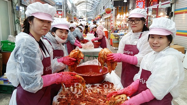 이날 행사는 광천읍과 자매결연을 맺은 안양시 소재 부흥고등학교 학생과 인솔교사 등 70여 명이 광천전통시장을 찾아 김장담그기 체험을 한 후 지역의 어려운 이웃을 위해 김장김치를 기부했다.