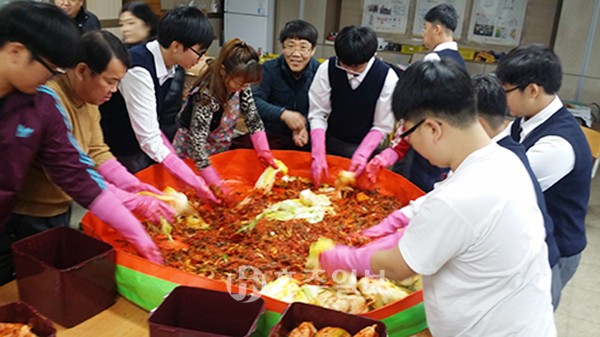 홍주중학교(교장 구철모) 텃밭동아리 회원 23명은 지난달 30일 학교 가정실에서 여름부터 땀을 흘리며 직접 가꿔 온 배추와 무, 열무, 대파 등으로 김장을 해 홍주중 복지 청소년 및 지역사회 협의체(홍성군청소년수련관 태양우주방과후아카데미)가 관리하는 청소년들에게 나눠는 봉사활동을 진행했다.<사진>