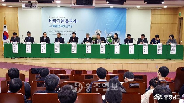 충남도가 물 관리에 대한 바람직한 정책담론을 제시하고, 중앙부처 정책 및 국회 입법 반영 촉구를 위해 국회에서 토론의 장을 펼쳤다. 충남도는 지난 8일 국회의원회관 제2소회의실에서 전현희·황희 국회의원과 함께 ‘바람직한 물 관리, 그 해법을 찾아서’를 주제로 정책 토론회를 개최했다.