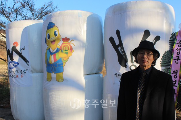 “추수가 다가올 무렵 황금물결로 풍성하게 보이던 논이 벼를 베어내면 너무도 쓸쓸하고 황량해 보입니다. 허전한 마음을 조금이나마 메울 방법이 없을까 고민하던 중 볏 짚단을 엮어놓은 곤포 사일리지를 보게 됐습니다. 여기에 제 서예 작품들을 부착한다면 어떨까 하는 생각에 전시회를 시작하게 됐습니다.”