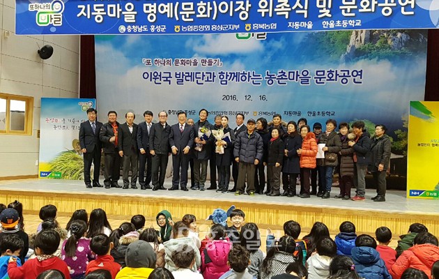범국민운동으로 추진 중인 명예(문화)이장 위촉식이 홍성군에서도 개최됐다. 농협중앙회 홍성군지부는 홍성군과 함께 지난 16일 홍북면 소재 한울초등학교 대강당에서 ‘이원국발레단’ 단장과 단원 등 2명을 명예이장으로 위촉했다. 이번 행사에는 김석환 군수, 유찬형 농협중앙회 충남지역본부장, 마을대표 및 주민 등 400여명이 참석한 가운데 진행됐다. 특히 이날 위촉식 이후에는 이장으로 위촉된 ‘이원국 발레단의 문화공연’이 이어져 참가자들에게 즐거움을 선사하고 농업인의 문화적 지위 향상에 기여하는 계기가 마련됐다.