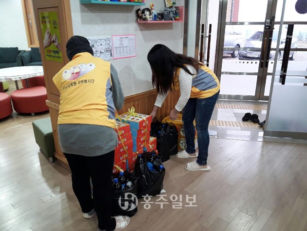 홍성의료원 직원들로 구성된 ‘홍의나눔’ 자원봉사단은 지난 24일 성탄절을 앞두고 덕산에 위치한 취약계층 영유아 및 아동, 청소년 보육시설인 새감마을에 간식 등 선물을 전달했다.<사진>