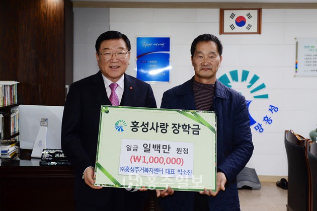 사단법인 홍성주거복지센터 박소진 대표는 지난달 27일 홍성군청을 방문해 지역발전과 가정형편이 어려운 학생들의 교육발전에 써달라며 홍성사랑장학금 100만원을 기탁했다.<사진>