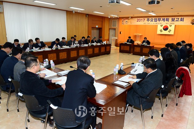 홍성군은 2017년 군정방향을 천년 홍주에 어울리는 역사·문화 도시조성 등 6대 분야를 중점 추진하겠다고 밝혔다. 이 자리에서 김석환 군수는 올해 군정추진 시 주민의견 청취에 철저를 기해달라고 주문했다. 군은 지난 10일, 군청회의실에서 김석환 군수를 비롯한 각 실·과장, 직속기관·사업소장 및 군정자문위원 등이 참석한 가운데 2017년 주요업무계획 보고회를 개최했다.