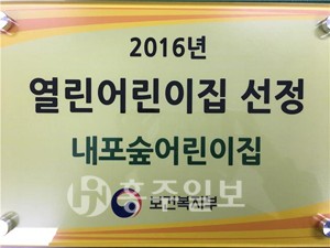 예산군 덕산면 소재 내포숲어린이집(원장 김숙경)이 보건복지부 주관 ‘2016년 열린어린이집’에 선정됐다. 보건복지부에서는 2015년도부터 부모에게 개방성이 높은 어린이집을 발굴 부모들이 믿고 맡길 수 있는 보육환경을 조성하기 위해 매년 참여성, 개방성, 다양성, 지속가능성, 특수성 등 5가지 항목의 세부지표 심사를 통해 열린어린이집을 선정하고 있다.