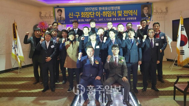 한국유신청년회(회장 김홍수)는 지난 13일 광천읍 삼정웨딩홀에서 2017년 신·구 회장단 이·취임식 및 전역식을 개최했다. 이날 행사에는 김석환 군수, 홍문표 국회의원, 이종화 도의원, 황현동 군의원, 최태수 광천읍장 등 120여 명이 참석했다. 이날 개최된 이·취임식에서는 제45대 회장인 최수호 회장이 이임했으며, 제46대 회장으로 신임 김홍수 회장이 취임했다. 특히 이·취임식에 이어진 전역식에서는 황규화, 이종선 회원이 전역했으며, 신입회원인 구자엽, 한욱 회원을 환영하는 시간을 가졌다.