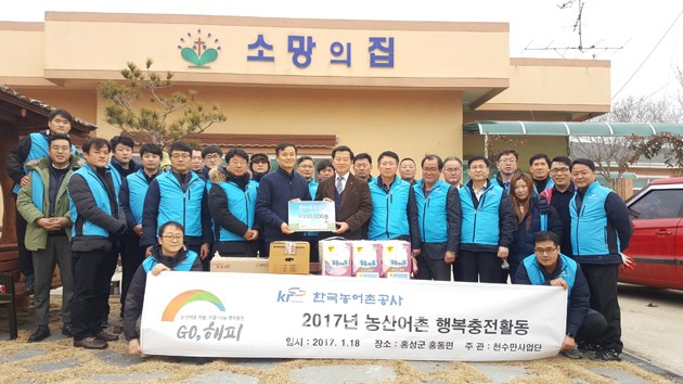 천수만사업단(단장 민흥기)은 2017년 새해를 맞아 지난 18일, 홍동면 광금남로에 위치한 노인요양시설 ‘소망의 집’을 찾아 ‘설 명절맞이 이웃돕기 활동’을 실시했다.