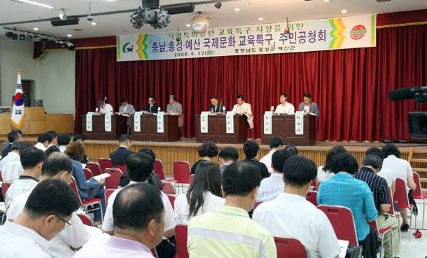 이날 공청회에서는 홍성군과 예산군의 교육전문가, 초ㆍ중ㆍ고 학교장, 학부모 지역 주민 300여 명이 참석한 가운에 진행됐으며, 홍성과 예산 지역에 국제문화 교육특구 건설안에 대한 주민들의 의견을 수렴하는 시간을 가졌다.