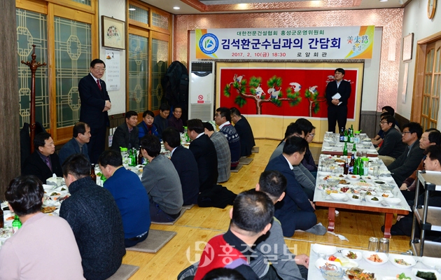 홍성군은 대한전문건설협회 충남도회 홍성군운영위원회(회장 차경래)와 지난 10일 로얄회관에서 지역건설산업활성화방안 모색을 위한 간담회를 개최했다. 이날 간담회에는 김석환 군수를 비롯해 전문건설협회 회원 등 60여명이 참석했다. 이날 간담회에서는 지역건설산업의 발전 방안을 함께 논의했으며, 군 전문건설협회는 홍성사랑장학금 200만원을 기탁해 지역인재 육성에 기여하는 자리가 됐다.