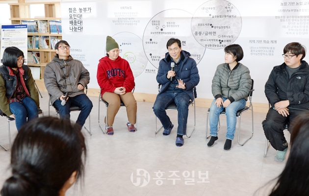 안희정 충남도지사는 16일 홍성군 장곡면 오누이권역을 방문, 협업농장 및 마을 사업 추진 현황을 살피고, 청년 농업인들과 농업·농촌의 미래 발전 방안에 대해 논의했다. 안 지사는 “여기 계신 분들은 대한민국의 역사를 새롭게 진보시키고 있는 첨병과도 같다”며 청년 농업인들을 격려했다. 이어 “산업화 시대 한강의 기적은 농업·농촌의 희생 위에 만들어졌다”라며 “그러나 과거에도 중요했고 미래에도 중요한 산업인 농업·농촌을 더 이상 방치하면 안 된다”고 말했다.