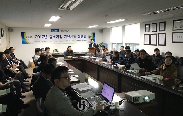 홍성군은 지역 중소기업을 대상으로 지난달 24일 일진전기㈜ 대회의실에서 ‘2017년 중소기업 지원시책 설명회’를 가졌다.<사진> 이번 설명회는 충청남도, 한국무역협회, 충남북부상공회의소, 충남신용보증재단 등 총 4개 기관이 참여해 30여 중소기업인을 대상으로 맞춤형 설명회를 개최하여 기업의 호응도가 높은 가운데 진행되었다.