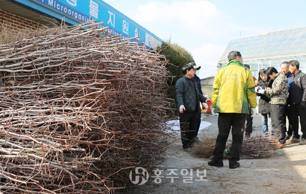 전국 최초로 중앙정부로부터 유기농 특구로 지정받은 홍성군이 친환경농업의 입지를 굳히기 위해 잰걸음을 이어가고 있다. 홍성군농업기술센터(소장 윤길선)는 지난 9일 왕대추 생산기반 조성 시범사업의 일환으로 홍성왕대추농촌지도자회 회원들을 대상으로 천황대추 묘목 9400주를 분양했다.
