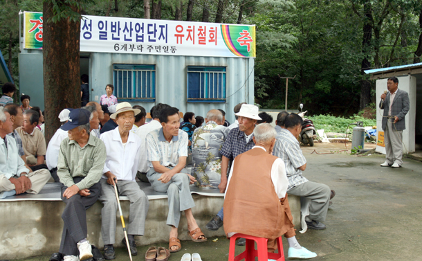 같은 시각 홍성군청 브리핑실에서는 장광수 지역과장이 기자들한테 “그동안 주민들과 원만한 합의를 도출하려고 했으나 주민들의 무리한 요구로 답보상태에 있다”고 밝히며 산단건설은 계속될 것이라고 말했다.