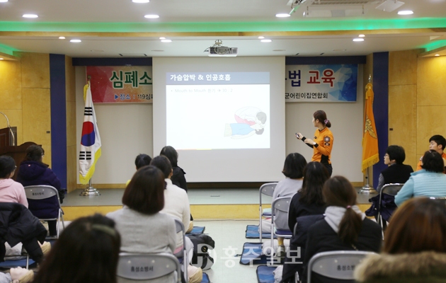 ▲ 홍성소방서(서장 채수철)는 지난 10일 오후 대회의실에서 군 보육교직원 20명을 대상으로 위기상황에서 생명을 소생시킬 수 있는 응급처치 및 심폐소생술 교육을 실시했다. 저작권자 © 홍주일보 무단전재 및 재배포 금지 홍주일보 다른기사 보기 페이스북 카카오톡 URL복사 기사공유하기
