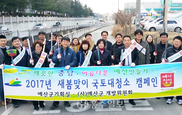 지난 17일 군에 따르면 지난 16일 군청 기획실 직원과 예산군 개발위원회 회원 등 30여 명이 참석한 가운데 관내 주요 아파트 주변과 도로변, 하천 등에 버려진 각종 쓰레기를 수거하는 등 환경정화 활동을 펼쳤다. 현재 군청 각 실·과 및 사업소, 읍·면사무소는 쓰레기 불법투기 지역 등 환경이 불량한 지역을 분담해 매월 1회 자율적으로 청소하는 ‘환경봉사의 날’을 지정 운영하고 있다.