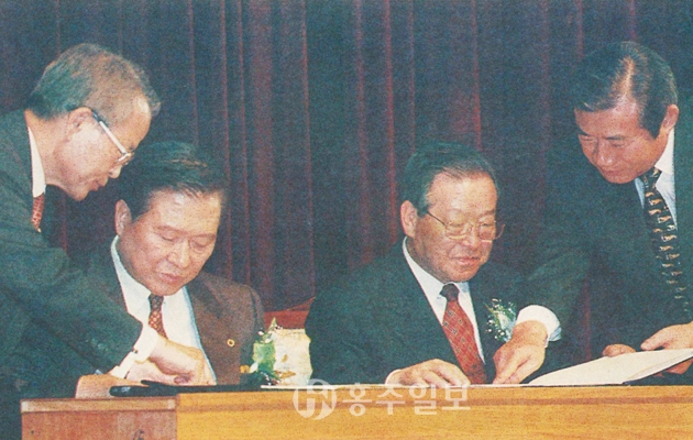 1978년 장관직에서 물러나 미국 캘리포니아대와 일본 게이오대 등에서 객원연구원으로 공부하다 1985년 공주고등학교 6년 선배인 김종필 전 국무총리를 찾아가 정치재개를 촉구, 신민주공화당을 창당 정책위의장으로 정치에 입문했다. 김 전 장관은 1988년 13대 총선(충남 대천·보령)에 출마해 당선됐고, 이후 16대까지 내리 4선 국회의원을 했다. 키는 작지만 머리가 좋고 아이디어가 풍부해 ‘꾀돌이’라는 별명을 얻었고 깐깐한 성격의 완벽주의자라는 평가도 받았다. 정치권에 들어와 1990년 ‘3당 합당’과 1997년 제15대 대선 직전에는 당시 새정치국민회의 한광옥 부총재와 막후협상을 벌여 대선후보 단일화와 당선 후 국정 공동운영을 조건으로 한 ‘DJP(김대중·김종필)연합’을 성사시키는데 큰 공헌을 했다.<위 사진 왼쪽> DJP연합 등 한국정치사의 주요 장면에서 ‘막후 협상자’ 역할을 맡았다.