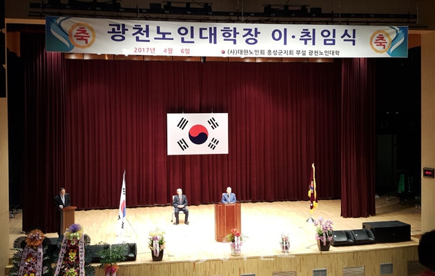광천노인대학장 이·취임식이 지난 6일 광천문예회관 대강당에서 150명 노인대학생들과 50여명의 내빈들이 참석한 가운데 거행됐다. 저작권자 © 홍주일보 무단전재 및 재배포 금지 홍주일보 다른기사 보기 페이스북 카카오톡 URL복사 기사공유하기