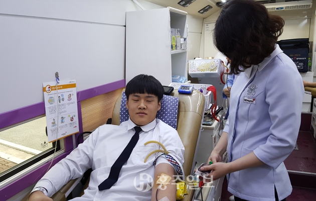 홍주고등학교(교장 구철모)는 지난 7일 학교에서 혈액원의 이동버스를 이용해 고통 받는 환자의 생명을 구하고 국민 건강을 증진시키기 위한 사랑의 헌혈운동을 실시했다.
