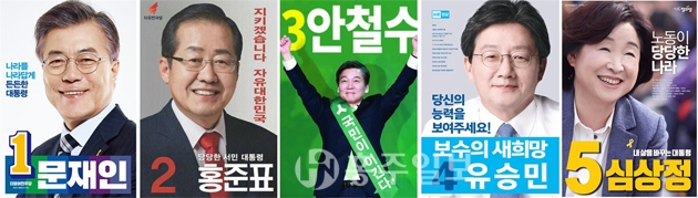 5월 9일 치러지는 제19대 대통령선거가 20일 앞으로 바싹 다가왔다. 최순실 국정농단 사태로 그 어느 때보다 개혁에 대한 국민적 요구가 높은 가운데 대통령 탄핵을 이끌어낸 ‘촛불 민심’을 읽고 국민의 선택을 받게 될 후보는 과연 누가 될까. 문재인 더불어민주당 후보·홍준표 자유한국당 후보·안철수 국민의당 후보· 유승민 바른정당 후보·심상정 정의당 후보 등 원내 5당의 대선주자들의 본격 선거전이 시작된 가운데 15명의 대선 주자들은 한 표를 호소하기에 바쁜 모습이다.