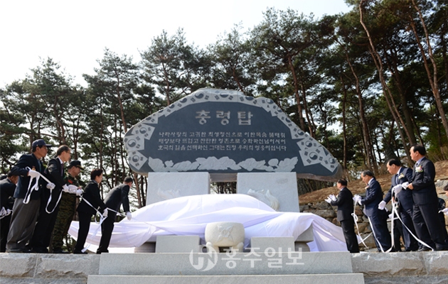 홍성군(군수 김석환)은 지난 18일 국가를 위해 희생하고 공헌한 분들의 숭고한 정신을 기리기 위해 건립한 충령탑 준공식을 충령사에서 개최했다.<사진>
