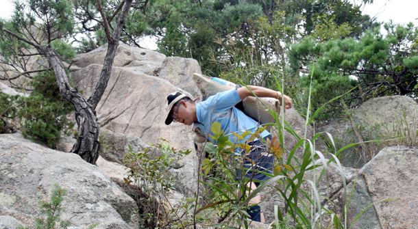 용봉산 최영 장군 활터 소나무 살리기에 발 벗고 나섰던 회원들이 지난 7일 소나무에 잔디뗏장을 입히는 작업을 마무리해 귀감이 되고 있다.