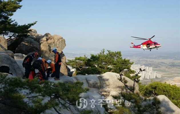 홍성소방서(서장 채수철)는 지난 15일 용봉산 노적봉 인근에서 하산 중 좌측 고관절 탈구로 통증을 호소하는 이 모(54)씨를 구조했다. 저작권자 © 홍주일보 무단전재 및 재배포 금지 홍주일보 다른기사 보기 페이스북 카카오톡 URL복사 기사공유하기