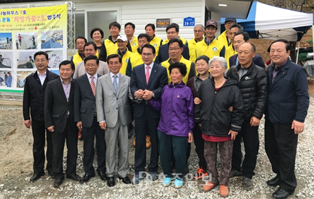 충남도자원봉사센터는 지난 20일, 서산시 운곡면 고산곰실길에서 ‘아름다움 1% 나눔, 희망家꿈 사업’을 통해 마련한 이동식 주택 제2호를 완성하고 수혜가구에 전달하고 축복을 기원하는 입주식을 개최했다.