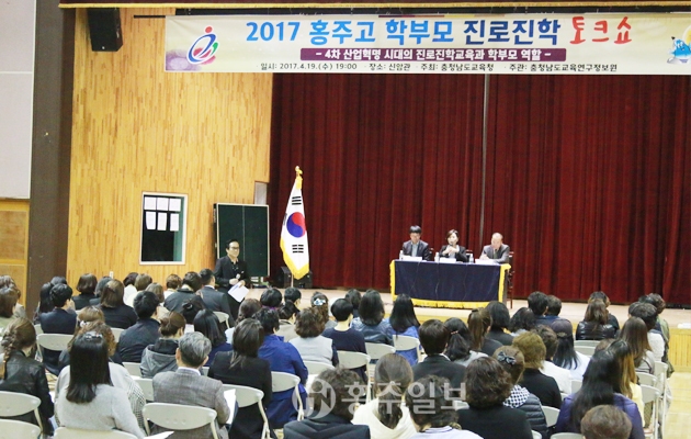홍주고등학교(교장 구철모)에서 지난 19일 ‘2017년 홍주고 학부모 진로진학 토크쇼’가 열렸다. 100여명의 학부모님들이 참석해 성황을 이뤘다. 학부모 진로진학 토크쇼는 충남교육연구정보원의 지원을 받아서 열렸으며, 이날 함께 주관한 홍주고 진로진학부에서는 시작에 앞서 오카리나 연주를 준비해 음악과 함께하는 편안한 분위기에서 토크쇼가 시작됐다.<사진>