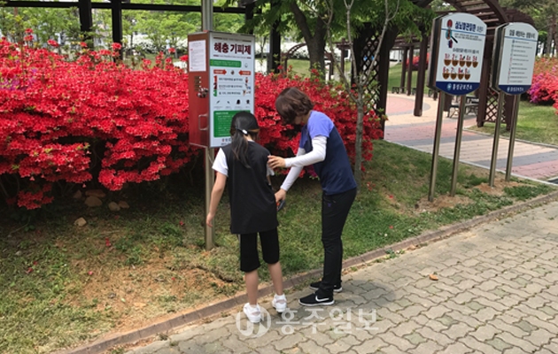 홍성군보건소는 군민들이 자주 이용하는 용봉산 등산로 입구 등 10개소에 ‘해충 기피제 자동분사기’를 설치 가동한다. 이번에 설치하는 해충 기피제 분사기는 분무기가 연결돼 있어, 산에 오르기 전 얼굴을 제외한 겉옷과 신발 등에 10초 정도 가볍게 뿌려주기만 하면 모기나 진드기 해충의 접근을 차단할 수 있다. 모기, 진드기 등 위생해충에 의한 감염병으로는 흰줄숲모기에 의한 지카바이러스감염증, 얼룩날개모기에 의한 말라리아, 작은소피참진드기에 의한 중증열성혈소판감소증후군(SFTS), 털진드기에 의한 쯔쯔가무시증 등이 있다.