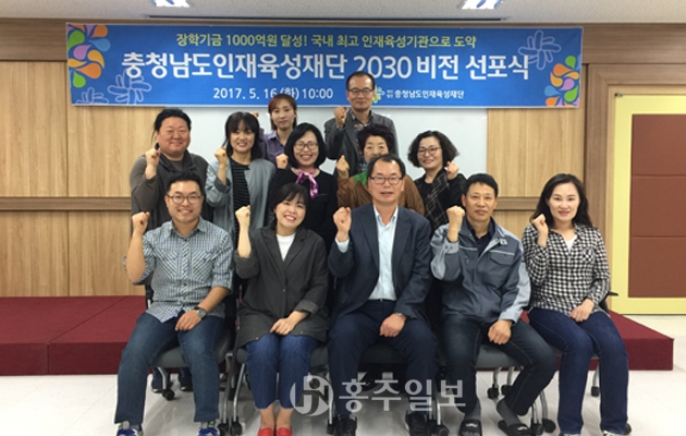 (재)충남인재육성재단(이사장 안희정, www.cninjae.or.kr)은 지난 16일 충남대전학사 다목적실에서 창립 5주년을 맞아 전 임직원이 참석한 가운데 새로운 비전 선포와 미래의 충남인재 지원·육성 및 교육 기부문화 정착을 결의하는 시간을 가졌다. 충남인재육성재단은 장학 및 공익인재 육성사업과 충남 대전학생기숙사를 운영, 충남 서울학생기숙사 건립 등을 추진하고 있는 충청남도 출연기관이다.<사진>