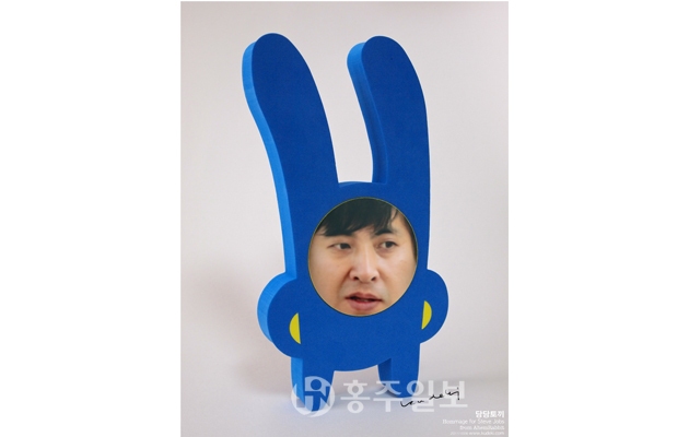 “설치와 카툰을 구분해서 얘기할 수는 없고요 서로 연관성이 있어요. 따로따로 보면 카툰이고, 조각이든 사진이든 회화작품이지만 이 작품들은 모두 제가 꿈꾸고 있는 세상에 필요한 오브제들이예요.” 작가는 자신이 새롭게 창조한 캐릭터 이자 설치작품인 ‘당당토끼’를 소개했다.