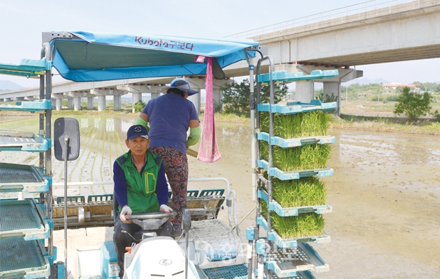 모내는 농부의 일손으로