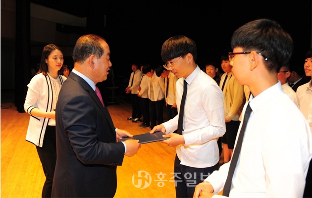 황선봉 이사장은 “작은 물고기는 연못 크기에 신경을 쓸 필요가 없지만 긴 강을 거쳐 넓은 바다로 이르게 될 물고기는 다르다”면서 “지역사회가 능력과 가능성을 인정한 학생들이 바다보다 크고 넓은 포부를 안고 예산의 발전을 선도할 훌륭한 인재로 성장하기를 바란다”고 말했다.