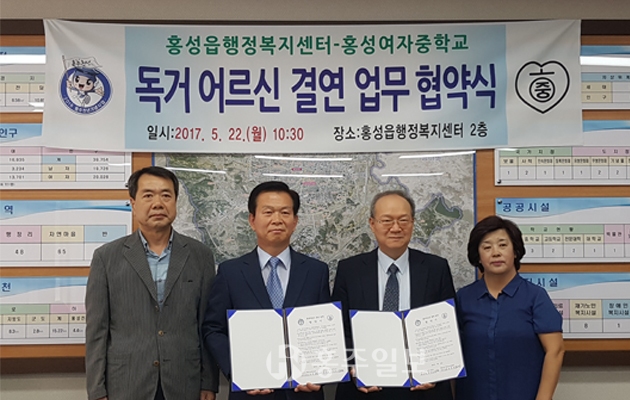 【홍성】홍성읍(읍장 장의남)은 지난 23일 홍성읍행정복지센터에서 홍성여자중학교(교장 박영순)와 관내 독거 어르신 결연 업무 협약을 체결했다.