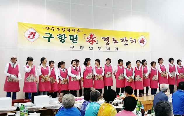 한편 구항면행정복지센터에서도 지난 18일 지역 어르신 200여분을 초청한 가운데 구항면행정복지센터 다목적 홀에서 경로잔치를 개최했다. 이날 행사는 구항면새마을부녀회(부녀회장 성옥분 외 23명)에서 주관한 행사로 정성껏 준비한 음식으로 어르신을 대접했으며, 5월 가정의 달을 맞아 카네이션 달아드리기와 선물증정도 함께해 어르신들에게 기쁨과 즐거움을 선사했다.