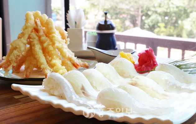 김 대표는 음식 솜씨에도 자신을 보였다. “초밥을 만들 때에는 재료, 밥의 양, 단촛물 세 가지를 항상 신경 쓴다. 초밥은 두툼하게 만들면서도 밥 양은 기존보다 조금 줄였다. 튀김의 경우 빵가루를 사용하는 일반 튀김과 차별을 두고 있다. 농도 조절을 통해 아주 얇고 바삭하게 튀겨 그 속에 살아있는 재료를 맛보실 수 있을 것”이라며 비법을 소개했다.
