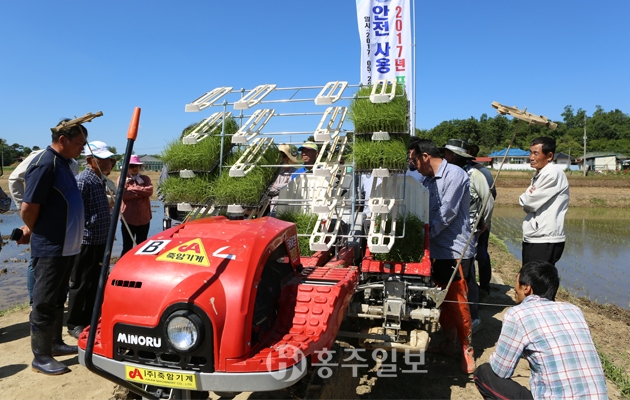 홍성군농업기술센터(소장 윤길선)는 지난달 30일 관내 농가 20여 명을 대상으로 친환경 포트 이앙법 확대 보급을 위한 포트묘 이앙기 시연 교육을 실시했다. 이날 교육은 홍동면 운월리 일대에서 포트묘 재배 방법 설명, 포트묘 전용 이앙기 재원 설명 및 시연 등으로 진행됐다.