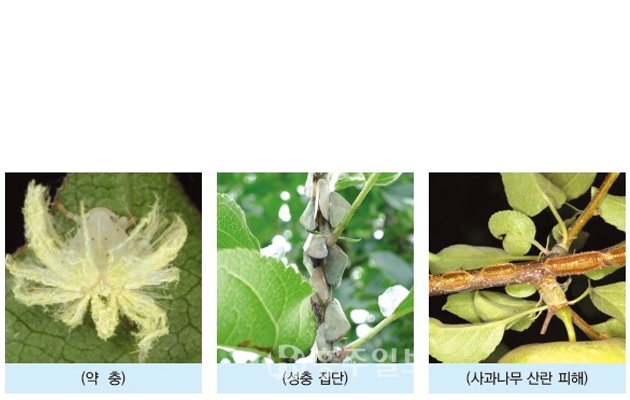 이에 농업기술센터는 과수농가의 자발적인 방제작업을 독려하기 위해 오는 23일부터 31일까지 군내 과수재배농가를 대상으로 과수 돌발해충 방제약제를 배부한다. 관행농법 농가에는 클로르니코티닐계, 친환경 과수재배 농가에는 친환경제재의 방제약제가 배부 될 예정이다. 희망하는 농가는 농업기술센터 소득작물팀(☎630-9121)에 전화로 신청하면 된다.