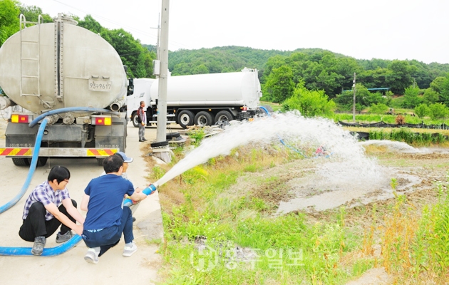 예산군이 지속된 가뭄으로 피해를 겪고 있는 농가들을 위해 지난 6일 액비수송 차량을 활용 농업용수를 공급하며 애타는 농민들의 마음에 단비를 뿌렸다. 이번 농업용수 공급은 최근 지속되고 있는 가뭄으로 물 부족 현상이 심화됨에 따라 농민들의 피해를 최소화하고 가뭄을 극복하고자 마련됐다.