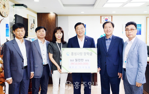 홍성군 재무과(과장 이승우)가 홍성사랑장학회에 1000만원을 2년 연속 기탁했다. 이번 장학금 기탁은 지난해에 이은 2년 연속 기탁으로, 장학금 100억 원 조성이라는 군정정책에 호응하는 모습이다.