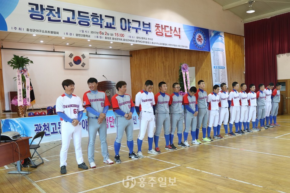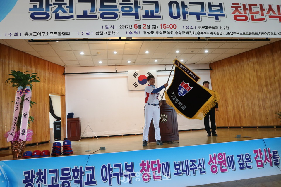 홍성군야구소프트볼협회(회장 노승천)는 지난 2일 광천고 체육관에서 광천고등학교 야구부 창단식을 개최했다.<사진> 이 날 창단식에는 한화이글스 박종훈 단장 등 야구관계자와 지역 기관·단체장 등 200여 명이 참석했다. 야구부 창단까지는 다양한 협회의 지원이 있었다.