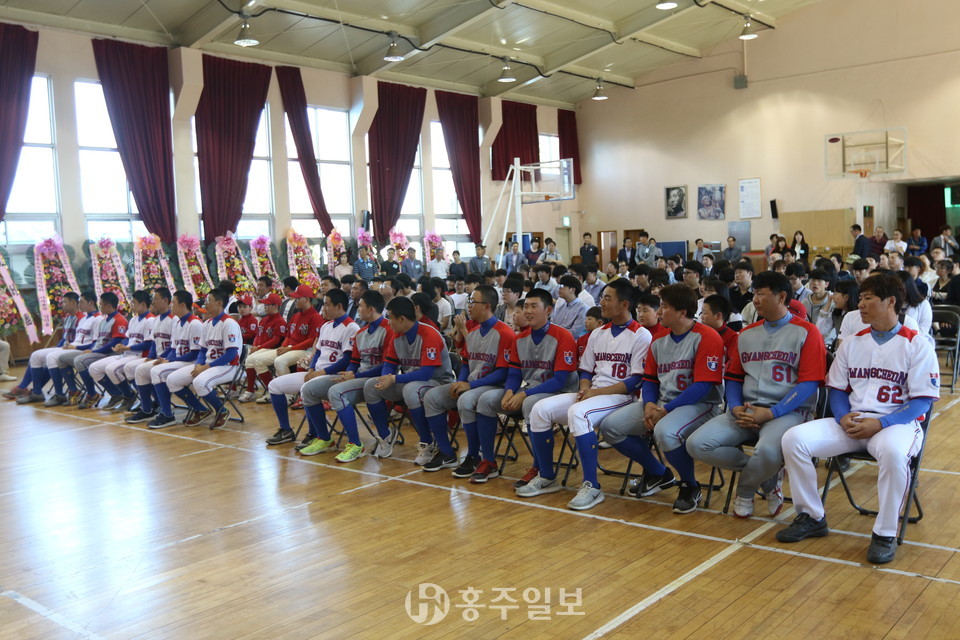 이날 광천고 박병규 교장은 “스포츠는 시간이 지나도 변치 않는다”며 “광천고 야구부가 활약할 앞날을 기대한다”고 말했다. 한화 박종훈 단장은 “전국적인 야구고 명문고로 거듭나길 바라며 광천고 출신들이 한화 유니폼을 입게 될 날을 기대하겠다”고 전했다