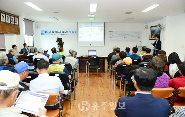 충청남도종합건설사업소(소장 최재왕)는 지난 14일 홍북면사무소에서 해당공사 토지 소유자와 실경격자 등이 참석한 가운데 내포첨단산업단지 진입도로 개설공사 주민설명회를 개최했다. 저작권자 © 홍주일보 무단전재 및 재배포 금지 홍주일보 다른기사 보기 페이스북 카카오톡 URL복사 기사공유하기