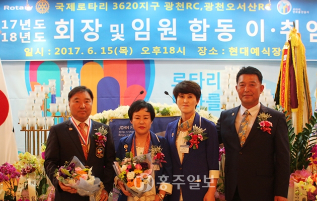 광천로타리 클럽(취임회장 신동규·이임회장 고영찬)과 광천오서산로타리클럽(취임회장 김현자·위임회장 정경숙)이 2017-18년도 회장·임원 이·취임식을 광천 현대예식장에서 동시 진행했다고 지난 15일 밝혔다.<사진>