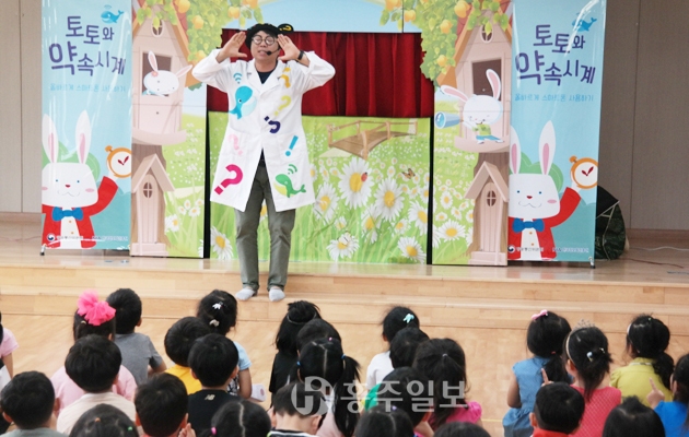 교육내용은 인터넷과 스마트폰 중독의 폐해, 미디어 사용의 장단점과 올바른 사용법, 중독예방 가이드와 올바른 실천을 위한 약속으로 이뤄졌으며, 토토와 약속시계라는 인형극을 통해 유아들의 흥미에 맞고 쉽게 이해되도록 진행됐다.