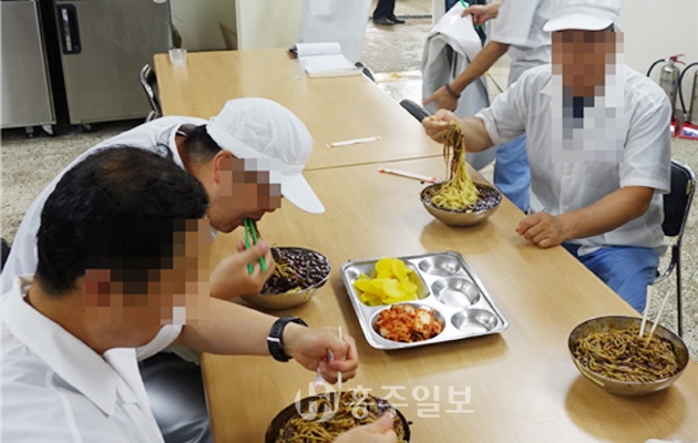 홍성교도소(소장 민육기)는 지난 9일 수용자를 위한 사랑나눔 짜장잔치를 열었다. 이 날 수용자 취사장에서는 민육기 소장이 교정위원 김봉래 목사, 은혜짜장선교단 김중교 전도사 등 봉사자들과 함께 짜장면을 만들어 수용자들에게 제공했다. 저작권자 © 홍주일보 무단전재 및 재배포 금지 홍주일보 다른기사 보기 페이스북 카카오톡 URL복사 기사공유하기