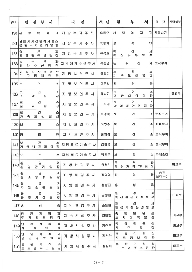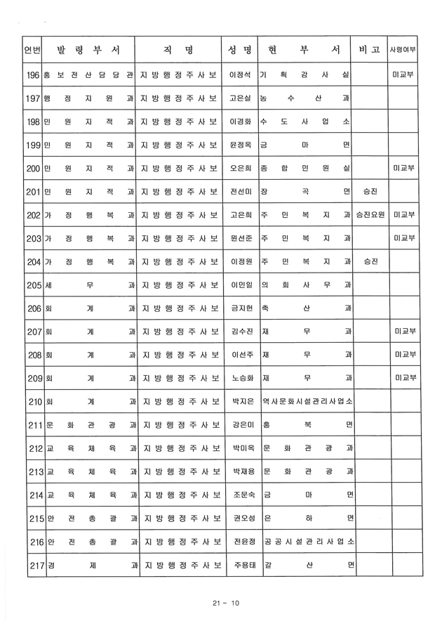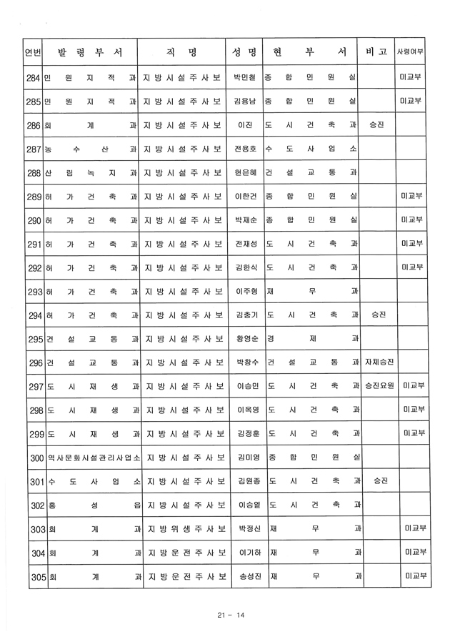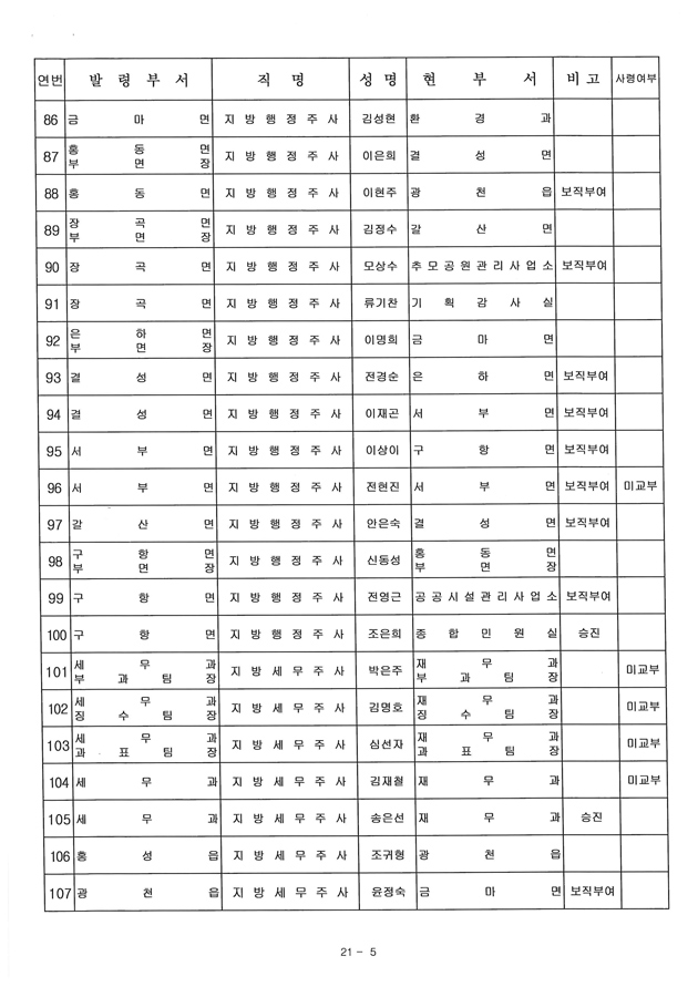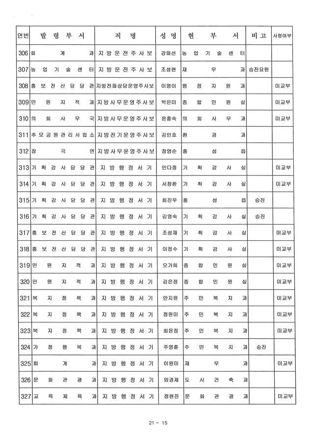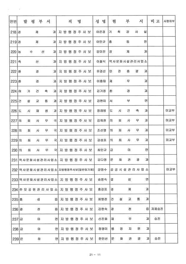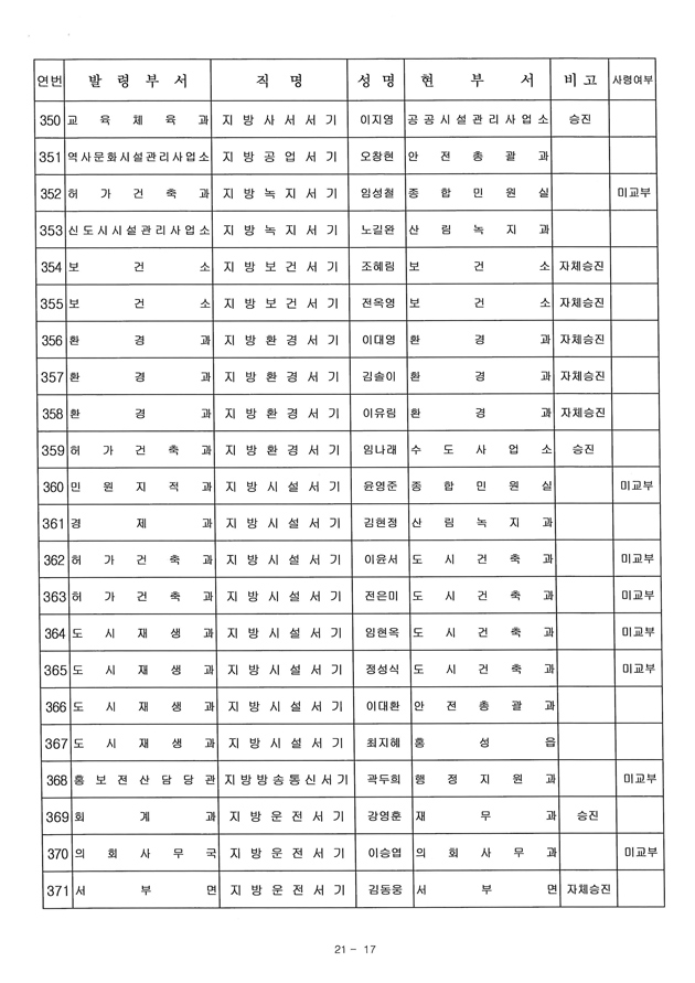 6급 승진자 21명 중 행정직승진자 5명에 그쳐