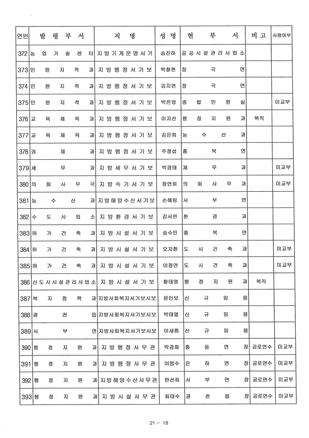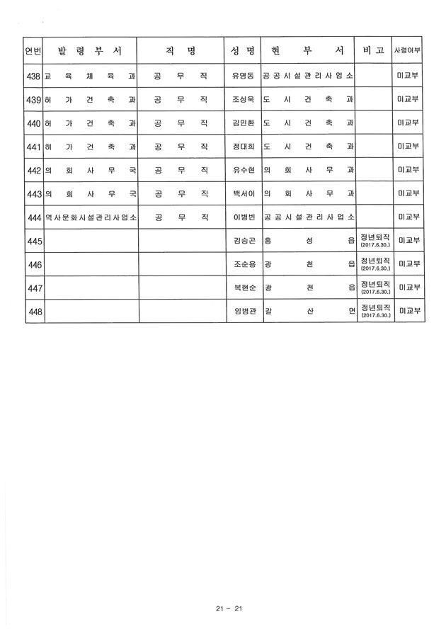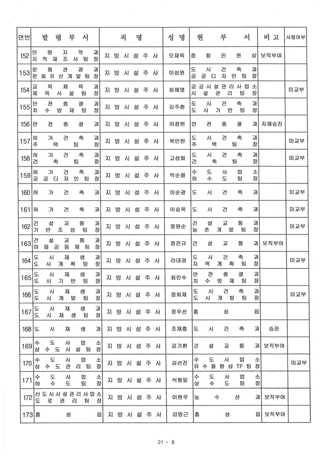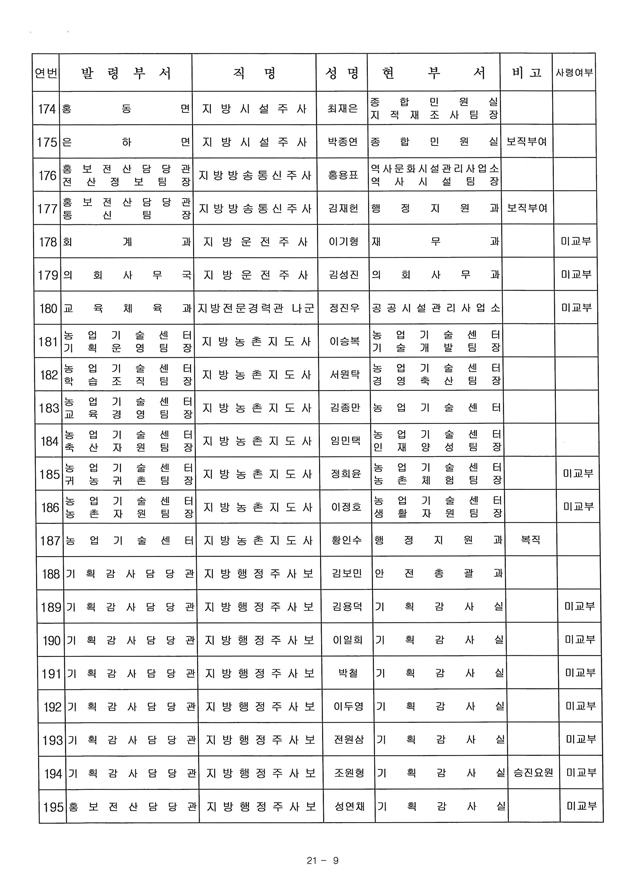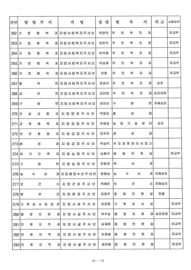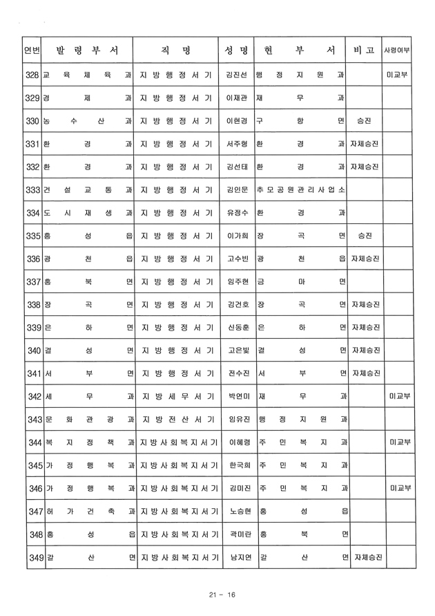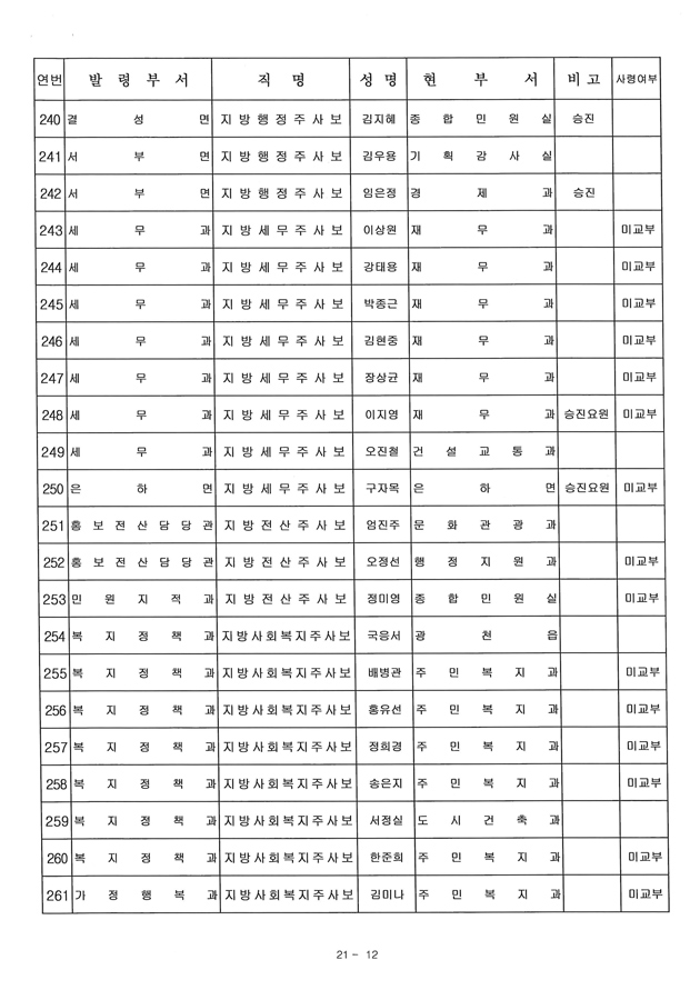 6급 승진자 21명 중 행정직승진자 5명에 그쳐