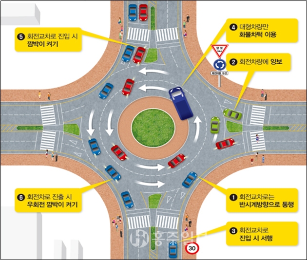 군 관계자는 “회전교차로 이용 시 무엇보다 중요한 것은 ‘양보’이며, 양보와 배려를 실천할 때 신호교차로 대기운행시간도 훨씬 단축되며 더욱 안전한 운행이 될 것”이라고 말했다.