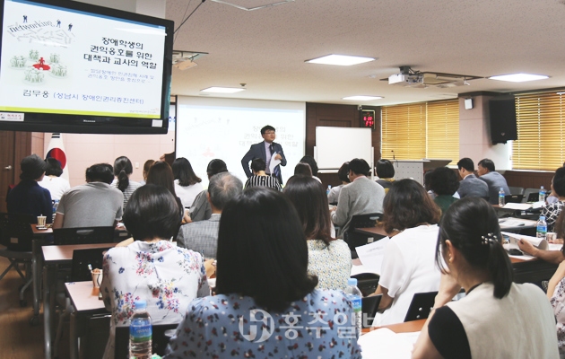 홍성교육지원청은 지난 22일 홍성교육지원청 대회의실에서 관내 학교 관리자, 통합학급 교사, 특수교사를 대상으로 ‘2017 장애학생 통합교육 지원을 위한 인권 감수성 향상 연수’를 실시했다.<사진>